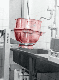 Within an industrial kitchen, the mixing bowls frequently reach weights of up to a substantial 200 kilograms. Handling such weighty mixing bowls becomes an exceedingly challenging endeavor for the average baker, posing significant difficulties in terms of lifting, moving, and pouring. Significantly enhancing safety.