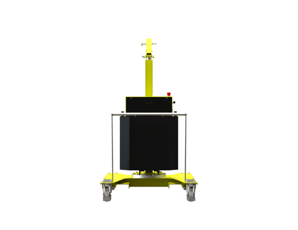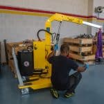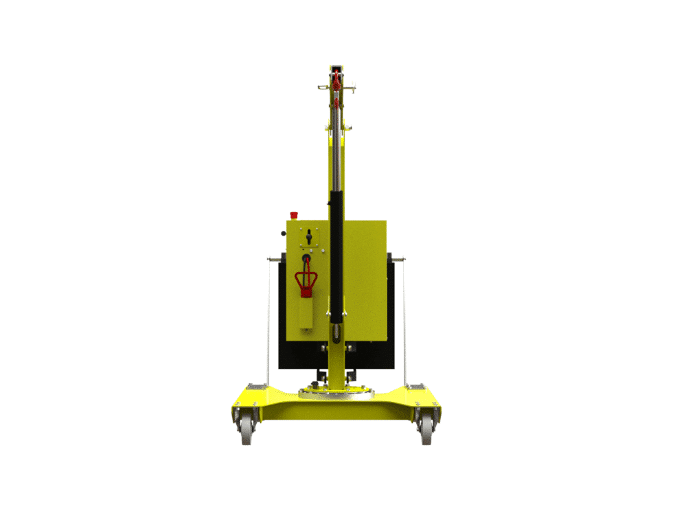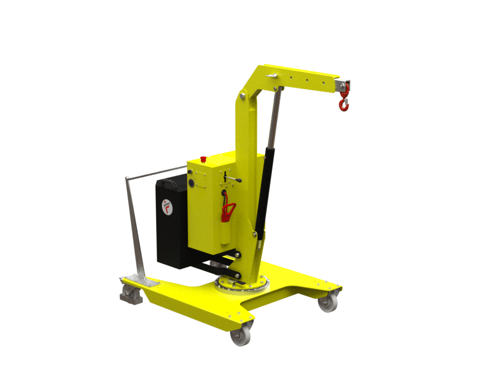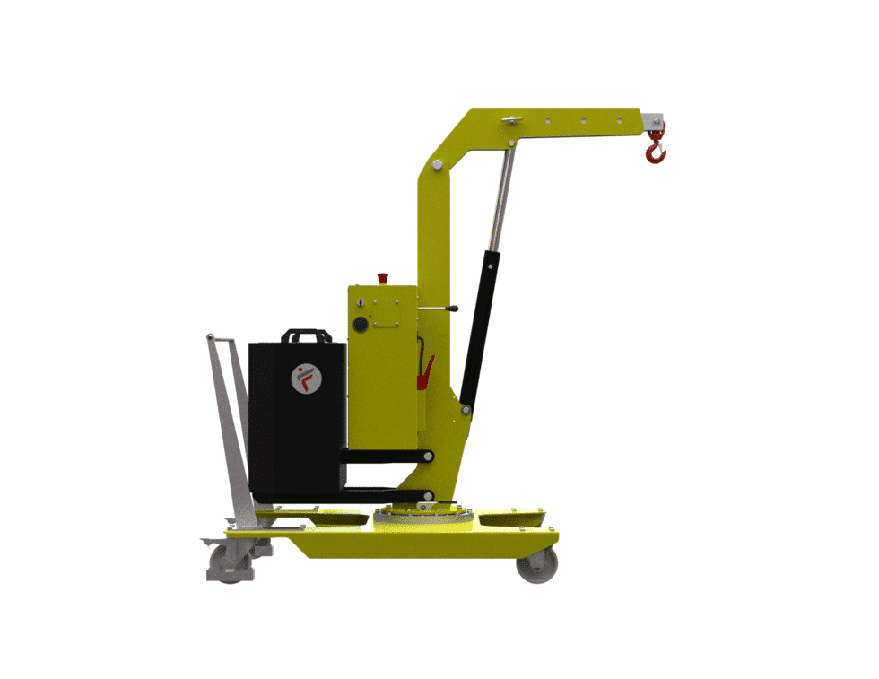 The 01B5L model is a compact and high-performance crane, characterised by a frontal footprint of just 980 mm, the smallest on the market. The movement system, consisting of 2 high-capacity pivoting wheels with bumper supports and parking brakes and 2 fixed front wheels with bearings, ensures exceptional manoeuvrability. The painted steel frame, the integrated forklift supports, the rotating hook with safety lock and the removable push handle make this crane a versatile and reliable solution for every need.