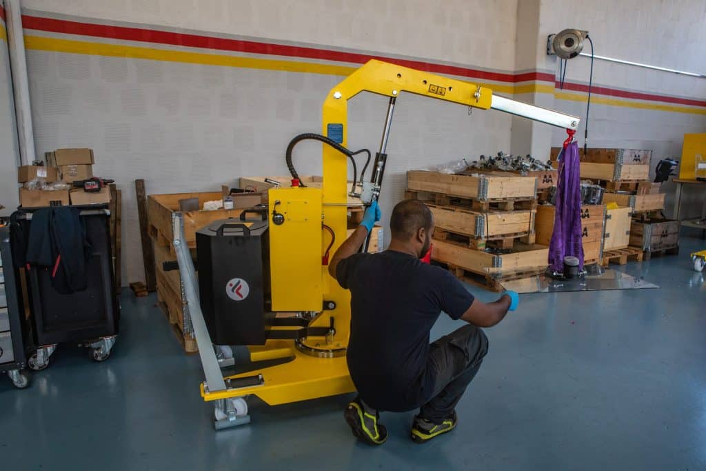 External battery charger. This crane is powered by a lead-acid battery and can also be equipped with a maintenance-free hermetic AGM battery or lithium battery.