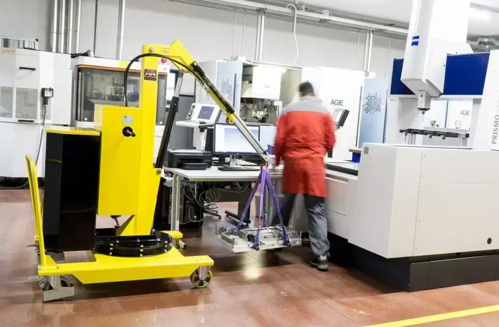 Model 01B5SE_400 is the most popular model for awkward placements from the ground onto 3D machines, lathes, over perimeter protections, narrow openings, etc., thanks to its 360° pivoting and in all those applications where there is no space to move the load with a forklift or other large sizes lifting equipment.