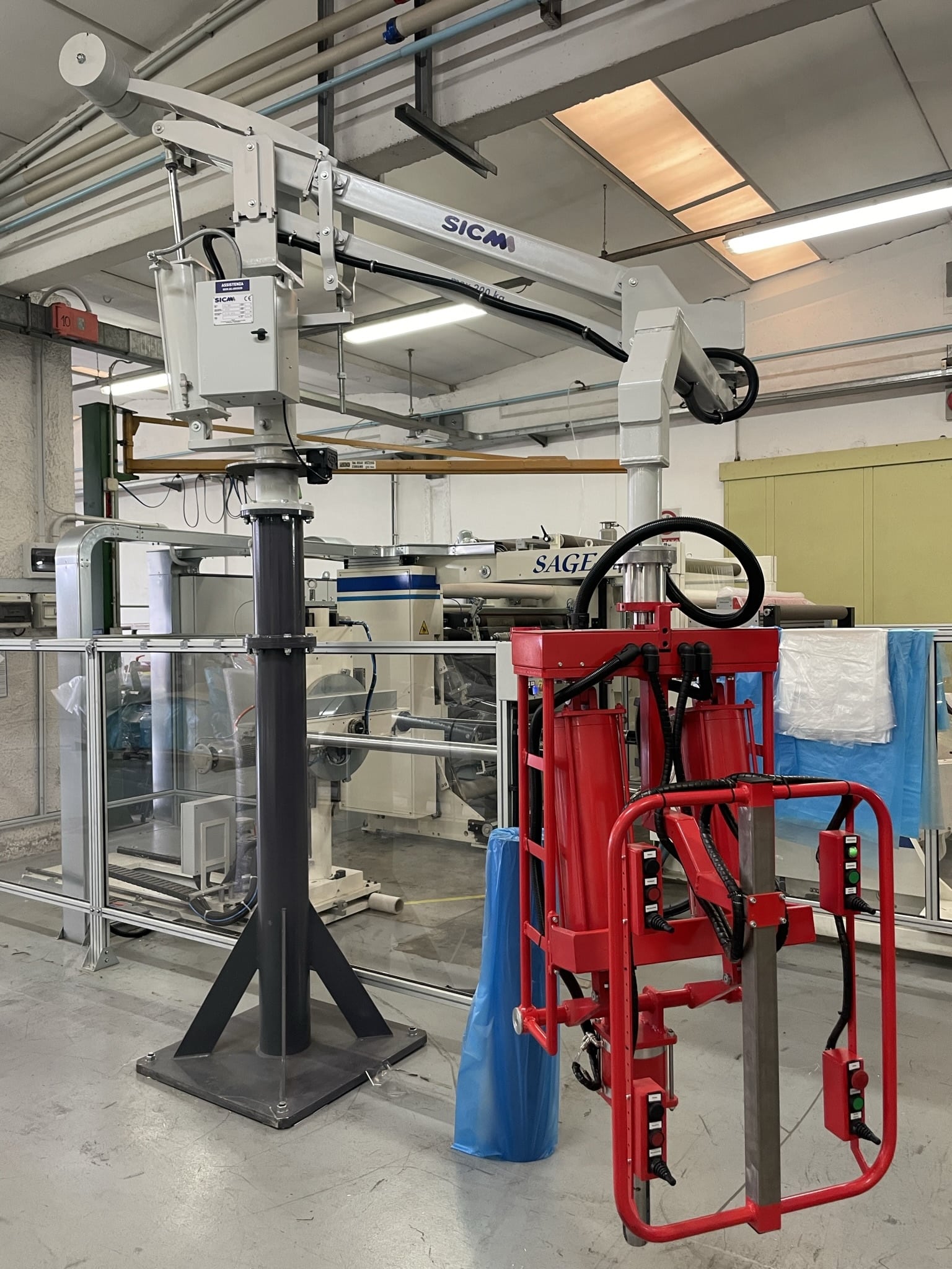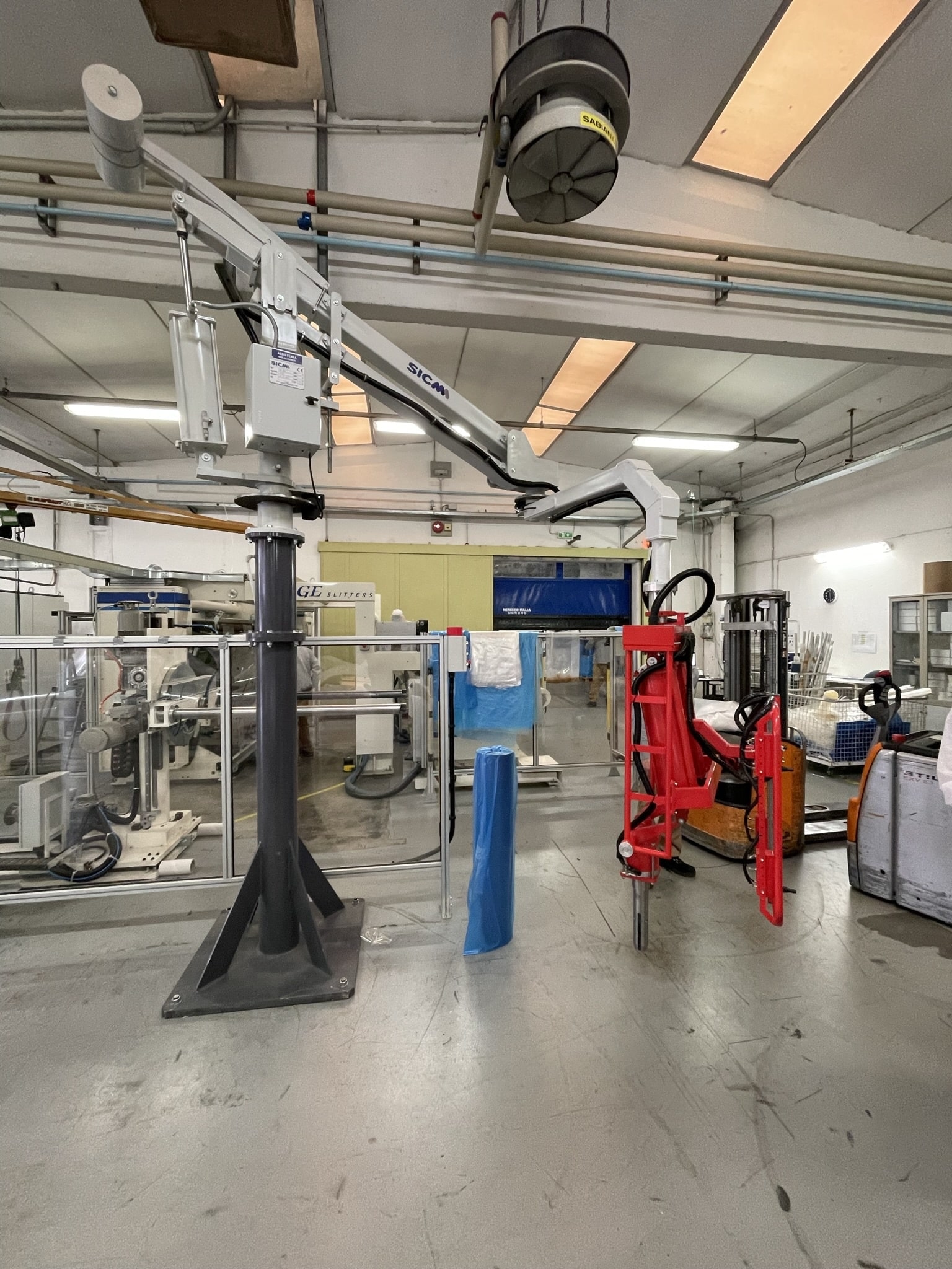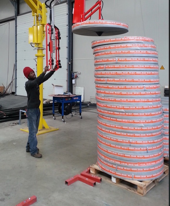 The lifter Lift Safe supplied is excellent, both operators of the laying machine have said its works perfectly and saves a lot of heavy lifting sometimes with 2 people, as you will see from the photos the roll needs to be lifted to almost head height so previously it was a struggle, however with your lifter the job is much easier and safer now.