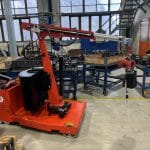 “The lifter Lift Safe supplied is excellent, both operators of the laying machine have said its works perfectly and saves a lot of heavy lifting sometimes with 2 people, as you will see from the photos the roll needs to be lifted to almost head height so previously it was a struggle, however with your lifter the job is much easier and safer now.”