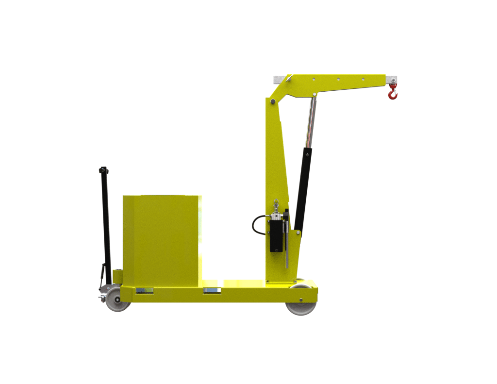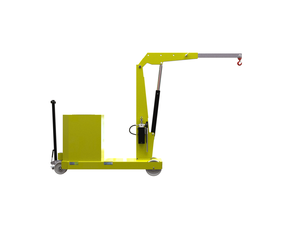 This counterbalanced crane is a testament to robust design, seamlessly integrating manual hydraulic lift/lower jib arm capabilities with a range of advanced features. Alongside its manual push/pull mechanism, a hydraulic lever-controlled fast lift double action pump ensures efficient and controlled lifting actions. A fine control descent knob adds precision to the process. The fixed jib arm further enhances stability and control.