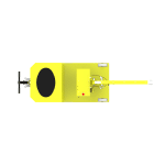 - Articulated steering drawbar with gas spring and Ø 200mm double wheels with ball bearings and braking system