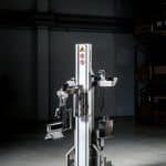 New legs and mast developed to accommodate motorised wheels and electronics.