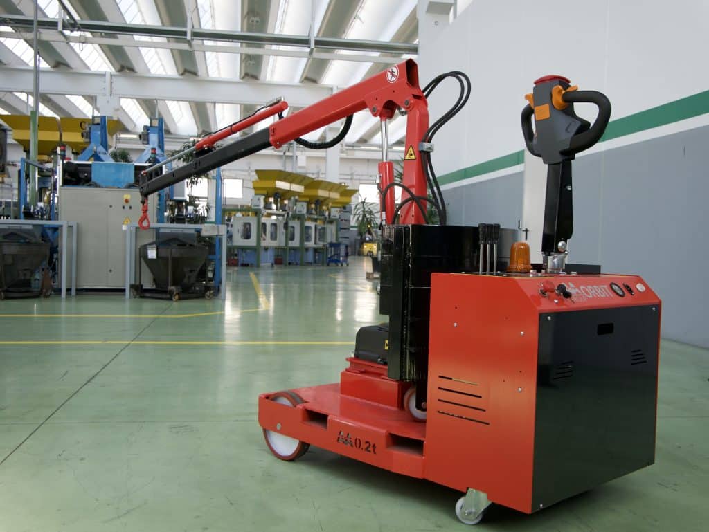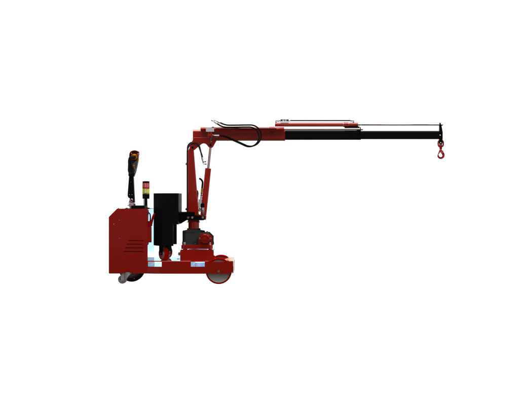 The pick and carry crane ORBIT 200EL is a full electric swivel crane with a capacity of 200 Kg that is equipped with proportional control levers with adjustable speed.