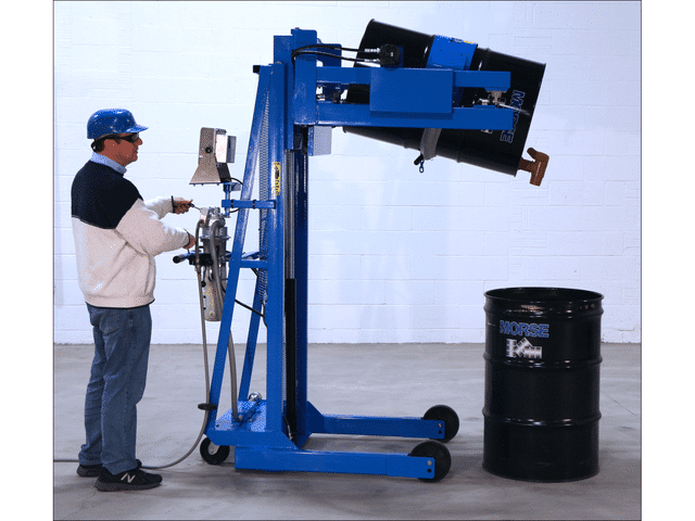 - Single-Stage Vertical Lift Drum Pourers dispense at up to 60″ (152 cm) high