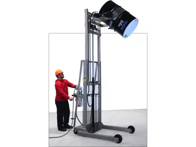 They make it simple to raise and pour a heavy drum. You control the drum pouring angle and height while you dispense. The compact base and quality components of this stainless steel drum handler make it easy to manoeuvre. Pour a drum with a drum faucet or drum cone in place.